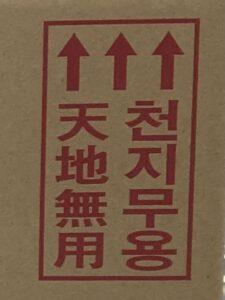 元々は一般的な無地の段ボールを使用されていて、そこに天地無用のシールを貼られていました。
